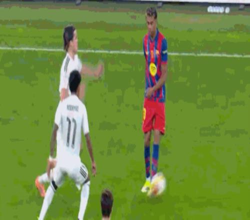第30分钟,亚马尔突破被断,随后对贝林厄姆犯规
