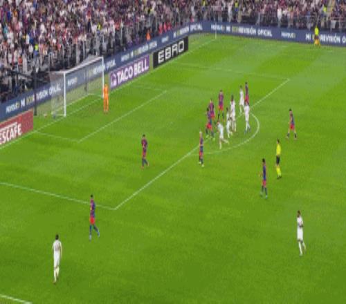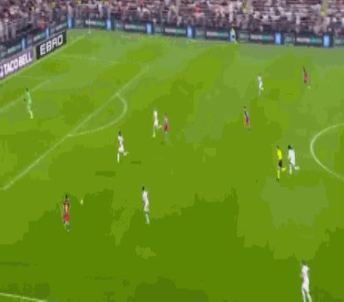 第36分钟,拉菲尼亚推射远角破门,巴萨首开记录1-0领先皇马!