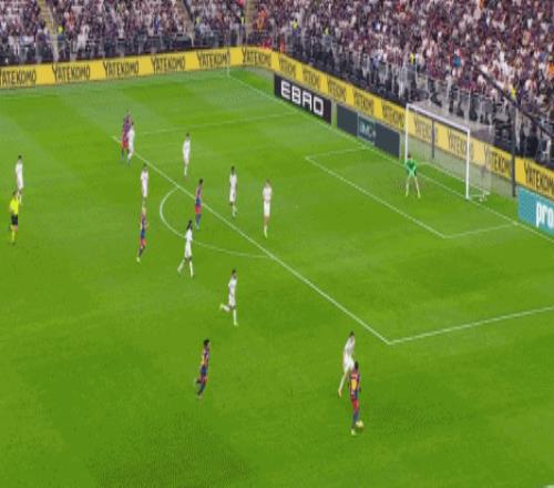 第45+4分钟,佩德里送出直塞,莱万挑射破门,巴萨2-1再度反超!