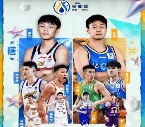 南区首发球员:徐杰 、胡金秋 、贺希宁 、郭昊文 、庞峥麟 。(徐杰为南区票王,得1654042票)